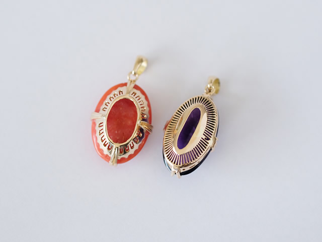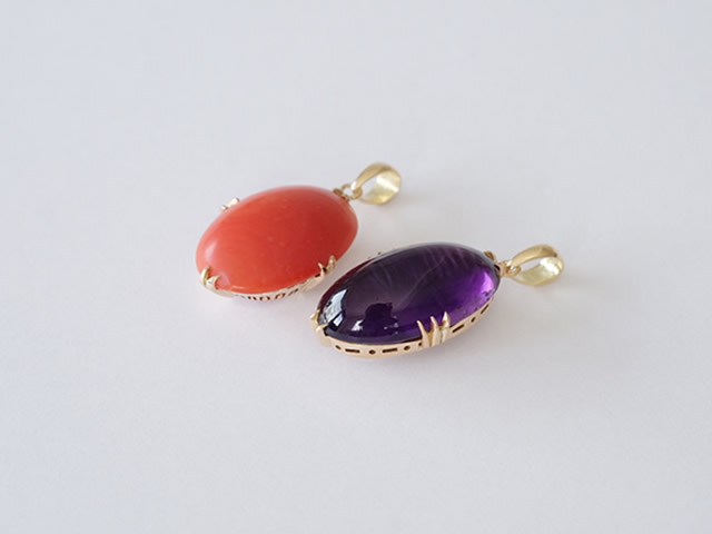 アメジストと珊瑚の留められている石座をそのまま使用するために