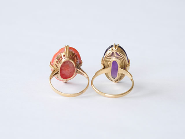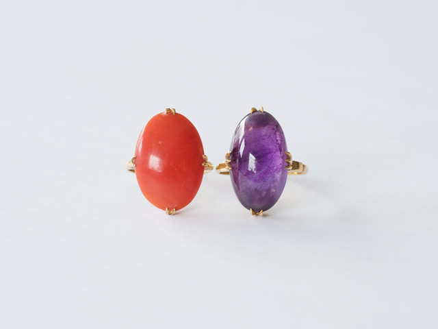 今回のリフォームは、お母様から譲り受けたアメジスト・珊瑚の留められたK18リングを