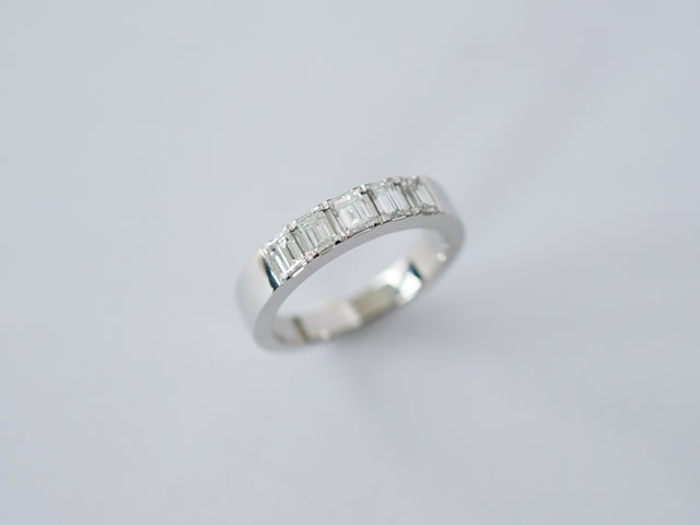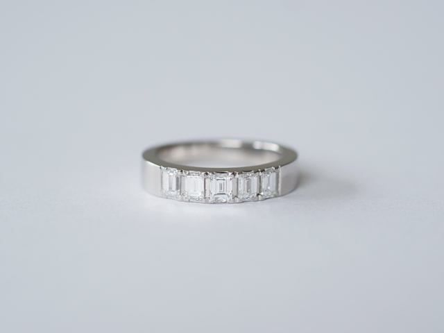 バケットカットのダイヤモンドが横一列に5つ止められた端正なバランスはそのままに、