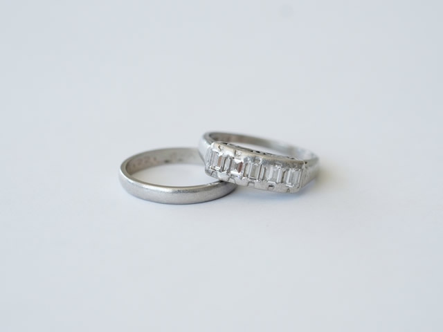 奥様の形見であるプラチナのダイヤリングとシンプルな地金リングを