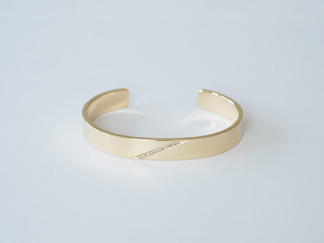 バングルの中央のメレダイヤはお持ちいただいたジュエリーに留まっていたルースを使用し、