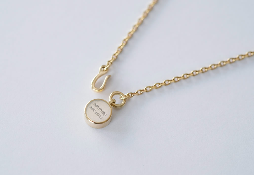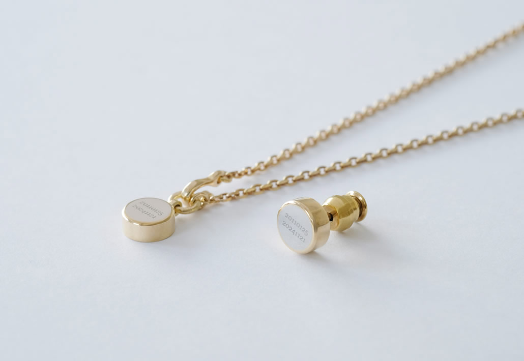 ペンダントとピアスの素材はチェーン、枠をK18で作り、納骨の際にするフタをPt900で制作しております。今回はピアスとペンダントそれぞれ別々の方が愛用されるそうですが、おそろいのデザインにすることで制作費を抑えることができます。