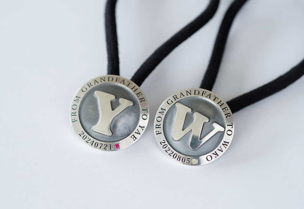 祖父からお孫様へのプレゼントとして、誕生石が留まったSV925製のイニシャルコンチョをご依頼いただきました。