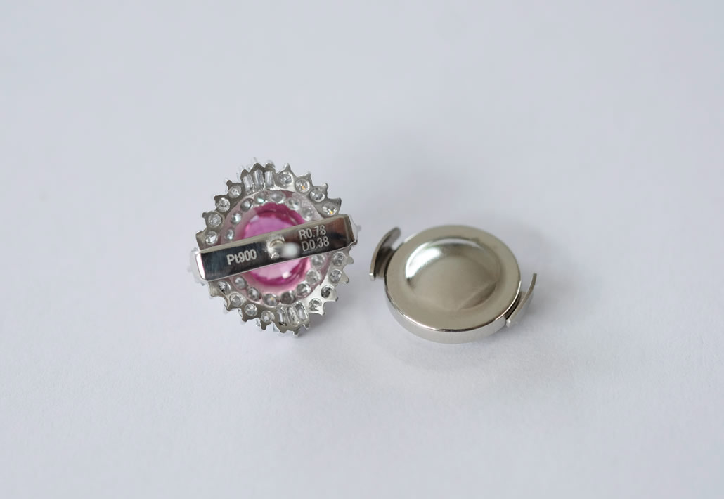 リングの石座部分はそのままに、2通りのデザインで使用できるタックピンにリフォームいたしました。