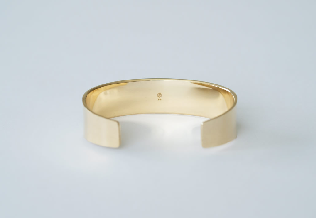 使わなくなったK18喜平ブレスレットを溶かし、鍛造製法でバングルへとリフォームいたしました。幅広いバングルは着脱や着用時に圧迫感を感じやすい為、開口部両端を少し細身にすることで着け心地を良く仕上げております。お手持ちのジュエリーを一度溶かして作り直すことで、これまでジュエリーに込められた思いは、新しいデザインとしてしっかり引き継がれます。