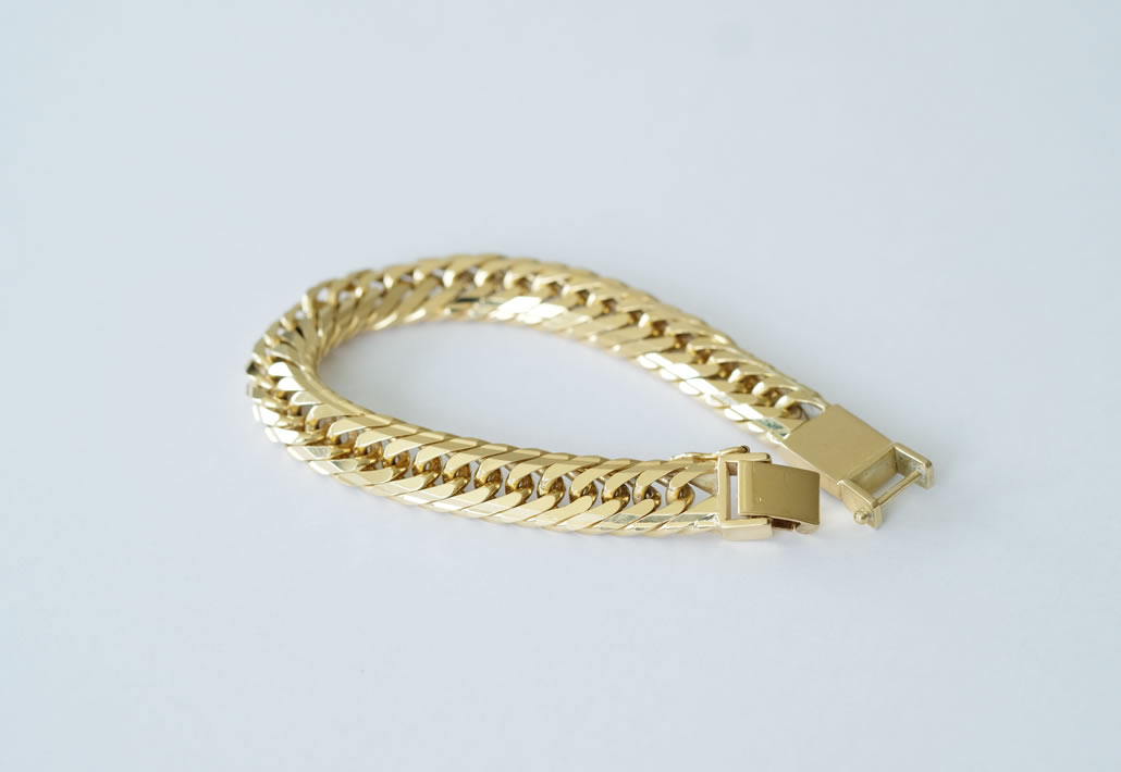 使用頻度が減ってしまったK18喜平ブレスレットを、鍛造の技法を用いて幅広デザインのシンプルなバングルにリフォームいたしました。
