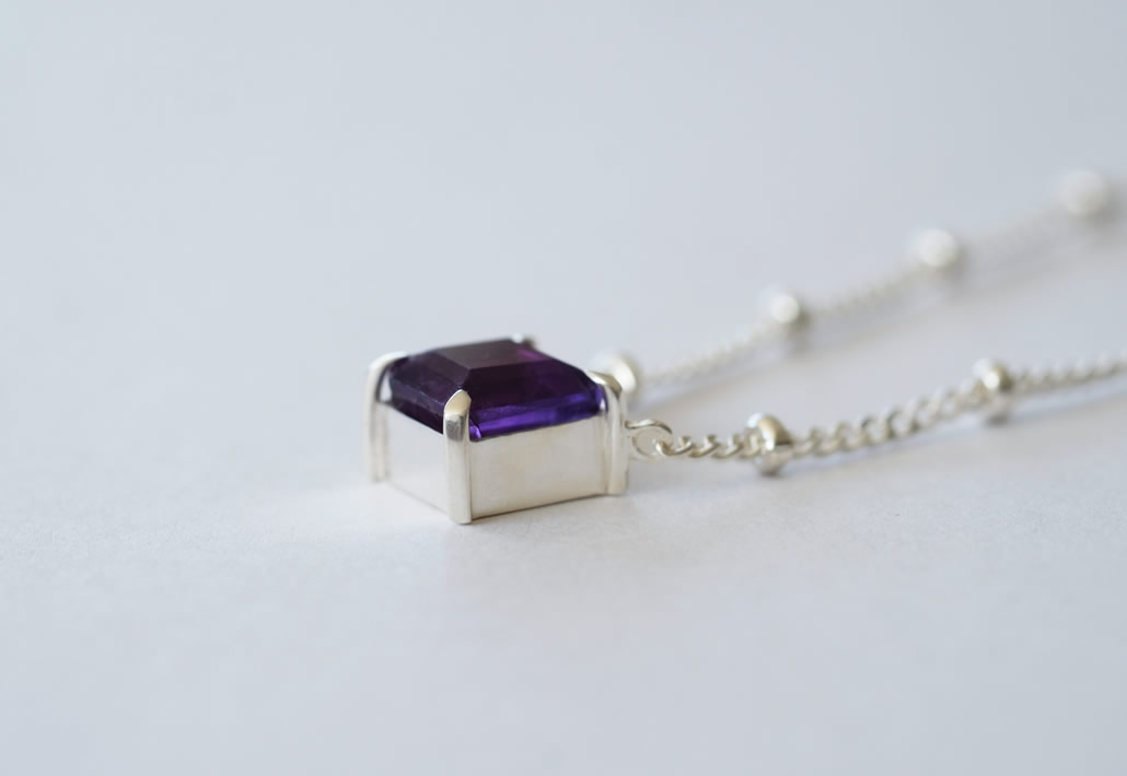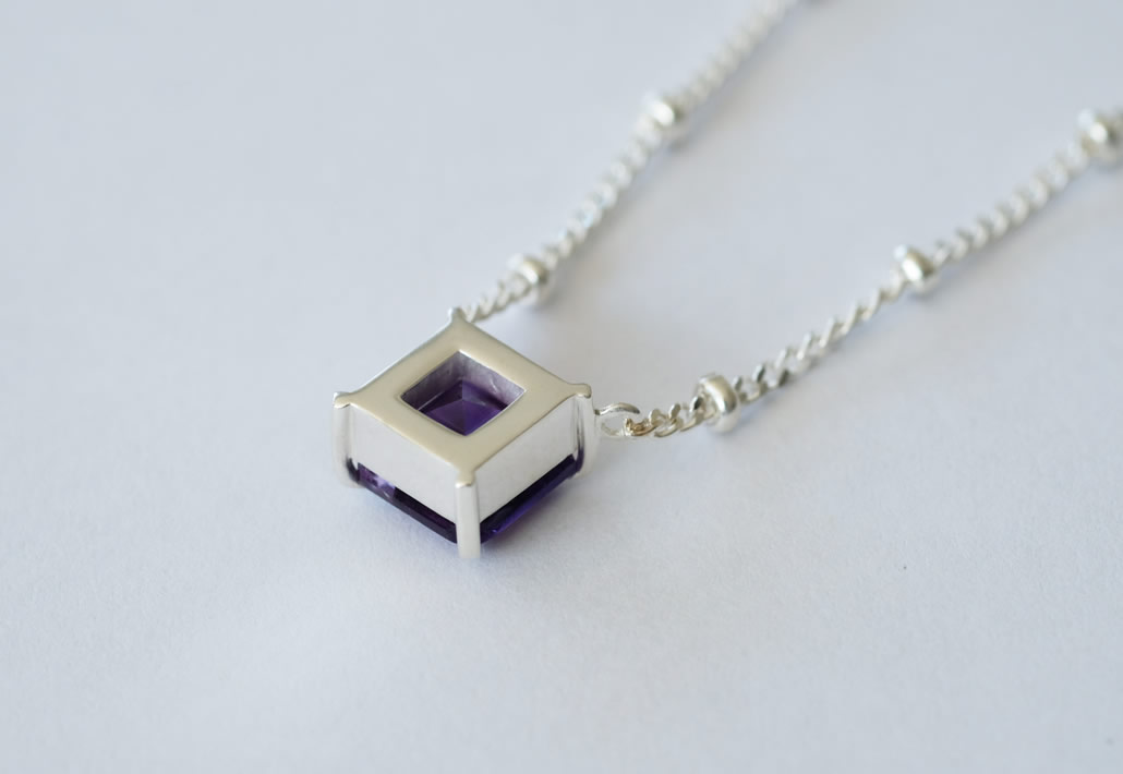 SV925を枠とチェーンに使用することでアメジストの美しい紫がより引き立ち、目をひくペンダントへと生まれ変わりました。