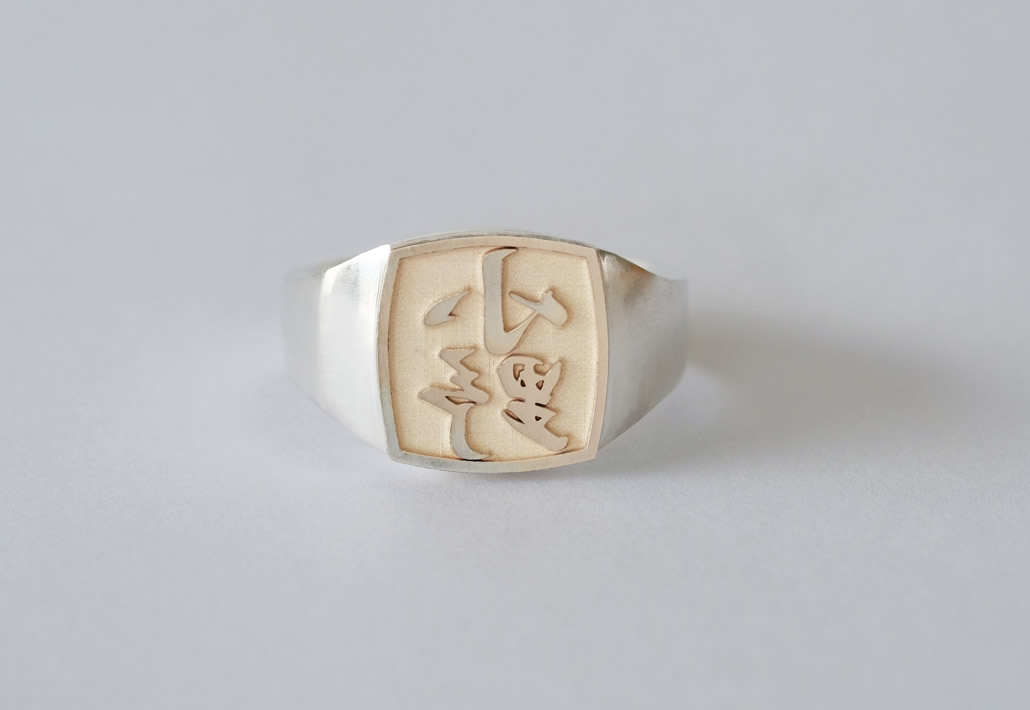 SV925&K10製の漢字印台リング